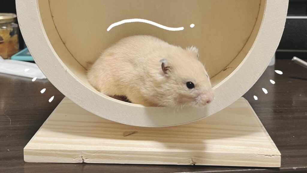 好奇心旺盛な成長期のハムスターはなんでもかじってしまうため、木製の回し車を選ぶのがおすすめです*