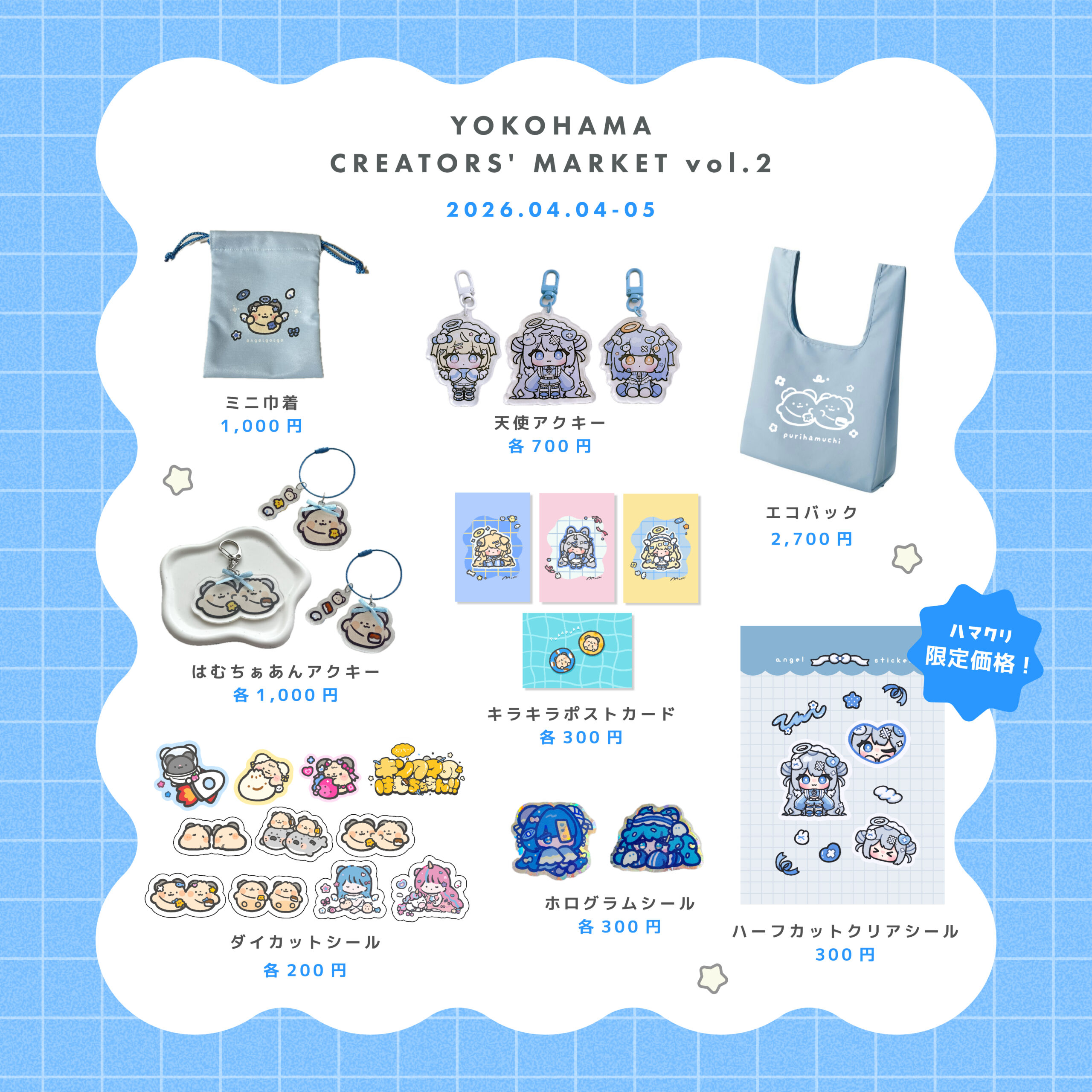 3/28〜4/19開催のイベント「YOKOHAMA CREATORS’ MARKET(ハマクリ)Vol.2」に出展します。本記事ではお品書きと、当時出展するグッズをご紹介します!ご来場予定の方はぜひ事前にチェックしてみてください*