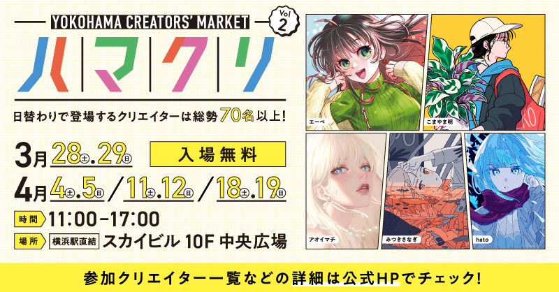 この度、ありがたいことにイベントにお誘いいただき、2026年3月28日(土)・29日(日)、4月4日(土)・5日(日)・11日(土)・12日(日)・18日(土)・19日(日)全8日間開催の「YOKOHAMA CREATORS’ MARKET(ハマクリ)Vol.2」に出展いたします。